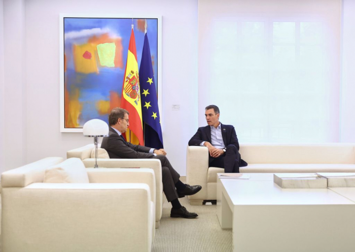 Sólo cinco días después, el presidente del Gobierno y el del PP se vieron en Moncloa. Fue su primer encuentro como presidente y líder de la oposición. La reunión entre ambos fue "cordial y amable", y desde el Ejecutivo se alegraban de que Feijóo se mostrará "más receptivo" que Casado. Sin embargo, ya por entonces Sánchez lamentó que aquella cita acabara "con más incógnitas que certezas" y el expresidente de la Xunta consideró que la reunión había sido "menos fructífera" de lo que a él le "hubiese gustado".