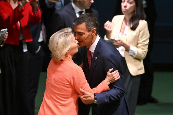Sobre Palestina habló Sánchez también largo y tendido en la conferencia internacional sobre la solución de los dos Estados celebrada en la ONU, con el auspicio de Francia y Arabia Saudí. El presidente reclamó que la comunidad internacional no mire para otro lado y adopte de forma inmediata medidas para parar el "genocidio" que lamentó que está perpetrando Israel en Gaza. "En nombre de la razón, en nombre del Derecho Internacional, en nombre de la dignidad humana, tenemos que parar esta matanza ya", dijo el jefe del Ejecutivo español ante el resto de líderes participantes en este foro y a los que planteó dos propuestas, la primera de ellas que Palestina sea miembro de pleno derecho de la ONU.