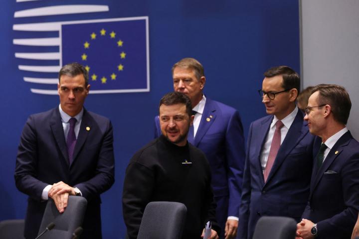 Zelenski ha discutido este jueves con los líderes de la Unión Europea en distintas reuniones por grupos de países la provisión de material militar, incluidos cazas de combate, en unas citas de las que, sin embargo, no saca ningún anuncio concreto.