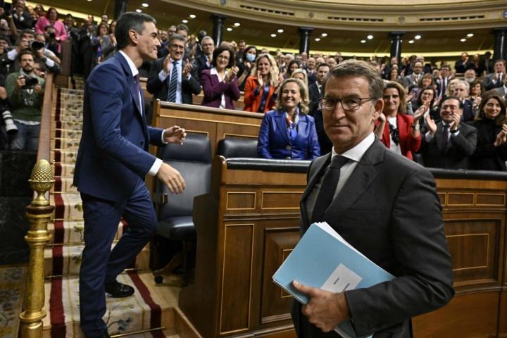 Una vez decantado el último escaño, desde la misma noche electoral, Sánchez tuvo claro que seguiría siendo presidente. Su euforia en el improvisado atril montado en los aledaños de la sede de Ferraz no era teatro, como sí ocurría en Génova 13, donde se afanaban en precisar que el PP era la lista más votada. Los más cercanos del presidente afirmaron entonces que se haría todo lo necesario para continuar en Moncloa, “siempre” en el marco de la Constitución. La batería de cesiones a los independentistas ha incluido una ley de amnistía que rechaza hasta buena parte de sus cargos y votantes. Pero peor habría sido un Gobierno del PP con Vox, vino a decir el propio Sánchez desde la tribuna de oradores.