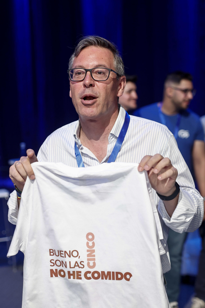 Sorpresa por las camisetas que el PP vende en su Congreso: "Son las cinco y no he comido"