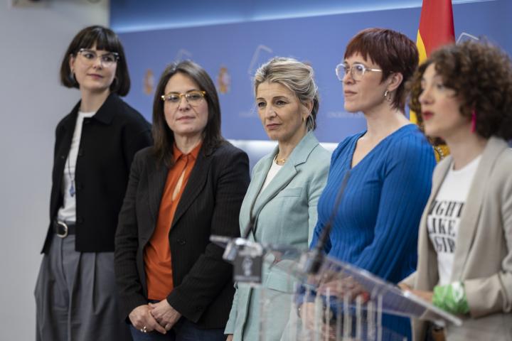Sumar ha propuesto seguir los pasos de Francia e incluir el derecho a la interrupción del embarazo en la Constitución española. En una rueda de prensa en el Congreso en la que han estado presentes ocho diputadas del grupo parlamentario, incluida Yolanda Díaz, la portavoz adjunta del grupo, Aina Vidal, ha enfatizado en la necesidad de "abrir el debate social" sobre este asunto para blindar este derecho en la Carta Magna.