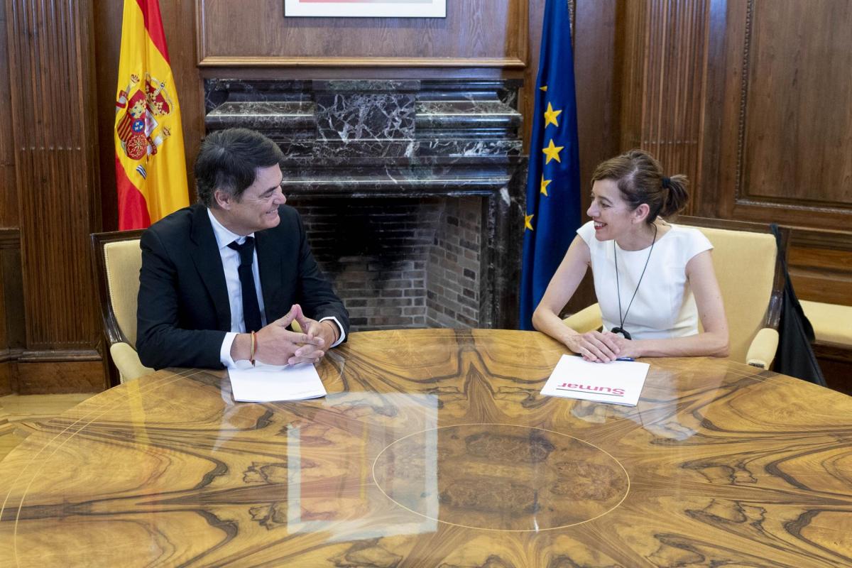 Los interlocutores en este encuentro han sido esta vez Lois y Rojas tras la negativa de la líder de Sumar y vicepresidenta segunda, Yolanda Díaz, a reunirse con Feijóo.