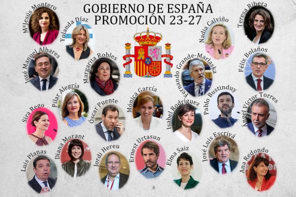 Sánchez revalida su confianza en Montero (Hacienda y asciende a vicepresidenta) Margarita Robles (Defensa), Grande-Marlaska (Interior), Albares (Exteriores), Planas (Alimentación) y las quinielas se cumplen con los cinco nombres de Sumar. Sorpresa en Igualdad, que recupera el PSOE.