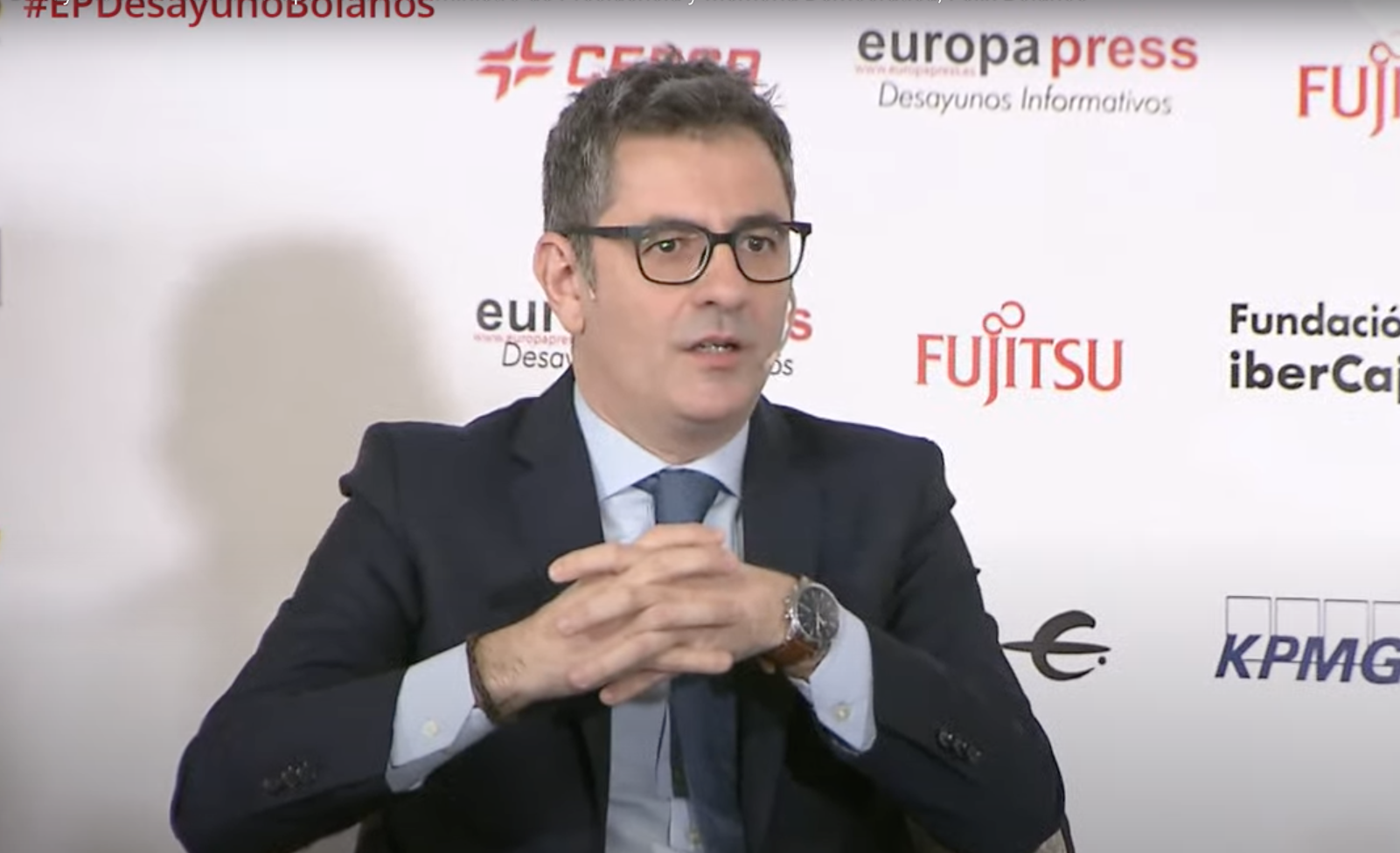 El ministro de la Presidencia, Relaciones con las Cortes y Memoria Democrática, Félix Bolaños, ha sufrido un buen susto cuando participaba en un desayuno informativo de Europa Press.