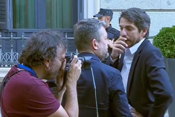 Pensaban que nadie les escuchaba, pero la cámara que graba las ruedas de prensa en el patio del Congreso estaba grabando y el micrófono abierto. Es así como se captó una conversación entre el ministro de Cultura, Ernest Urtasun, con el diputado de ERC Francesc Marc Álvaro cuando se supo que Junts votaría que no al techo de gasto.