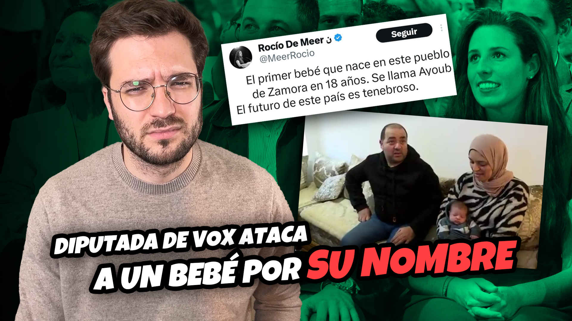 Esto es lo más asqueroso que podía hacer Vox. En un pueblo de Zamora de 91 habitantes ha nacido un bebé después de 18 años sin que naciese nadie. Los vecinos están contentísimos, la señora mayor le da besos, y todos están felices por tener vida nueva. ¿Y qué hace la diputada de Vox Rocío de Meer? Pues compartir el vídeo y decir que "el futuro de España es tenebroso" porque el niño se llama Ayoub.