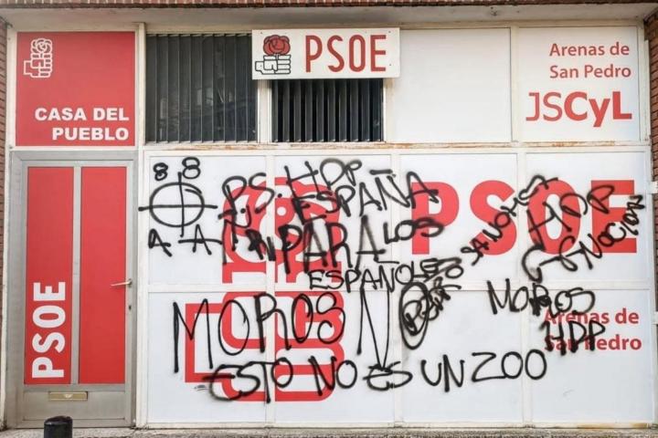 La Casa del Pueblo del PSOE de Arenas de San Pedro (ÁVILA) ha amanecido vandalizada con pintadas de simbología nazi y mensajes de odio contra inmigrantes, el colectivo LGTBIQ+ y el presidente del Gobierno.