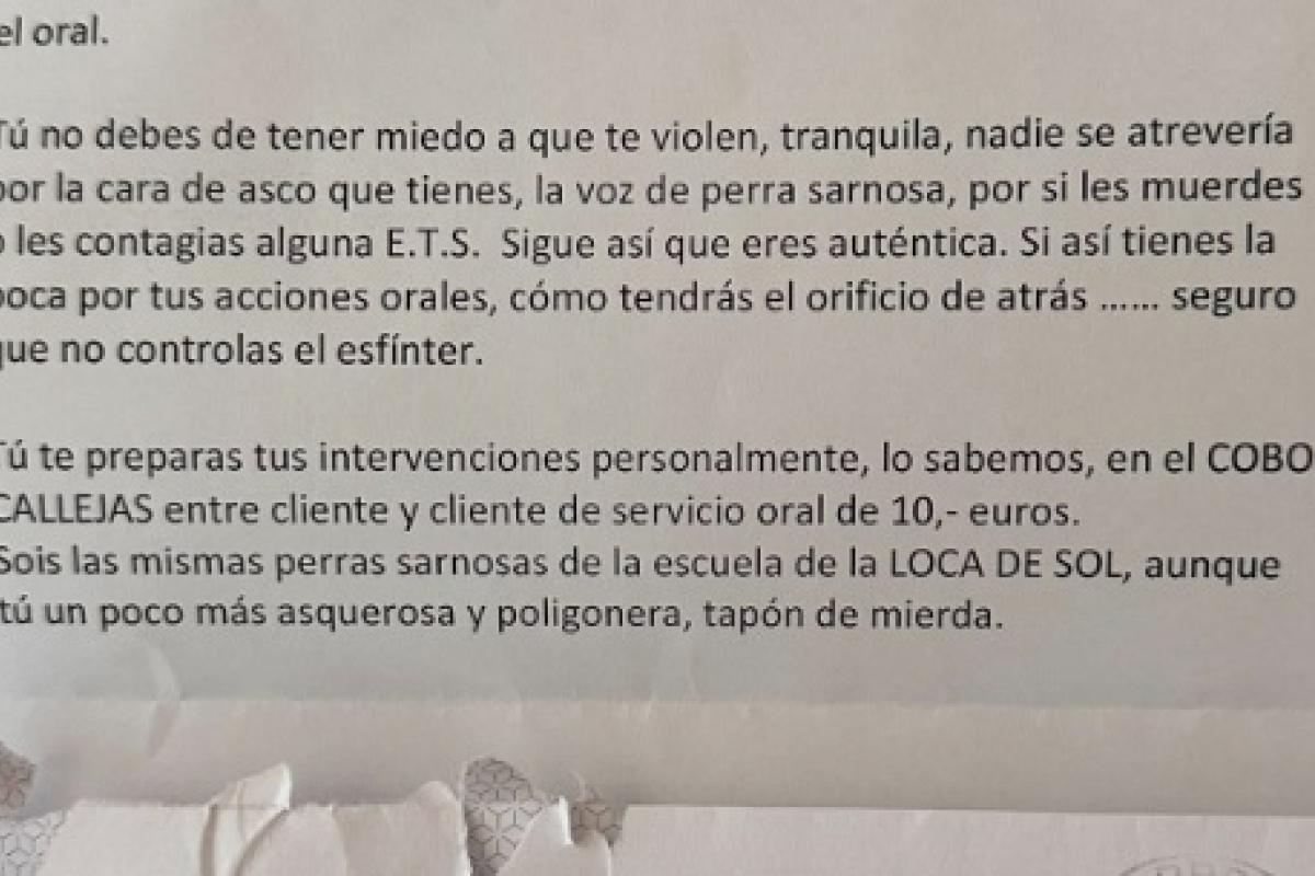 En la misiva, entre otros graves insultos, se reproducen más faltas de respeto.