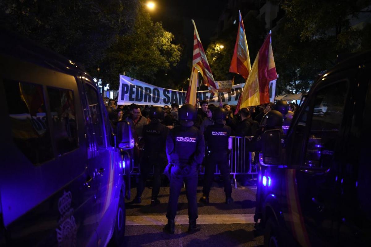 Con el lema "No a la amnistía", los manifestantes han mostrado su rechazo al pacto alcanzado por el PSOE con ERC y especialmente contra una posible amnistía al expresidente de la Generalitat, Carles Puigdemont, huido en Bélgica desde el referéndum ilegal en Cataluña de 2017.