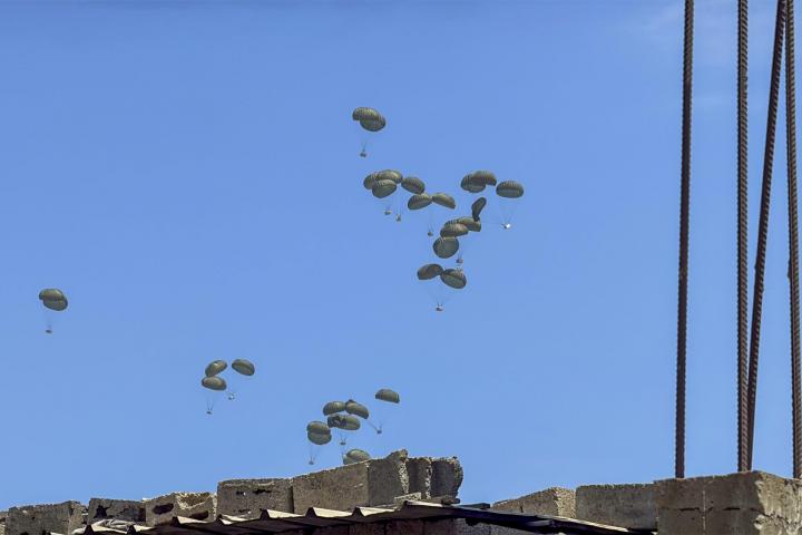 El Ministerio de Defensa ha confirmado que los 12.000 kilos de comida, gestionados por la Agencia Española de Cooperación al Desarrollo (AECID), han sido lanzados a Gaza con ayuda de 34 paracaídas, en un esfuerzo del Gobierno por ayudar a paliar la hambruna que azota a la Franja por el bloqueo de la ayuda humanitaria por la vía terrestre.