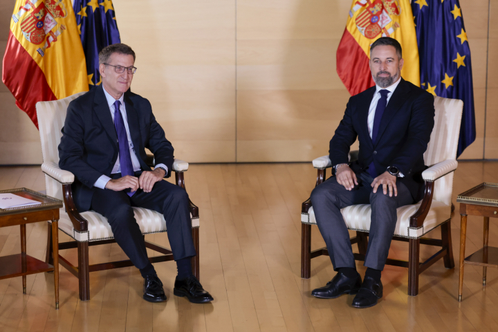 Para los politólogos, las matemáticas son claras: lo que sube Abascal, lo baja Feijóo. "No hace falta ser un experto en la materia para ver la hostia del PP", explica Juanjo Domínguez, un profesional que lleva años publicando en internet estimaciones de voto. Según él, la bajada de Feijóo es evidente y considera que algunos sondeos están inflando el porcentaje de voto que sumarían PP y Vox en unas generales.