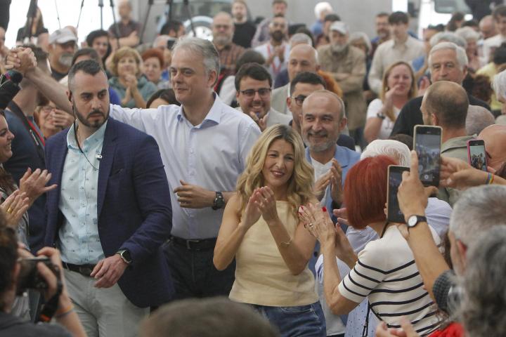Y Yolanda Díaz salió al rescate de Podemos. La vicepresidenta segunda del gobierno y ministra de Trabajo pidió este miércoles a los alicantinos durante un acto electoral su voto para el candidato de Unidas Podemos a la presidencia de la Generalitat, Héctor Illueca. Díaz dejó a un lado sus reticencias con la formación morada para apoyar al cabeza de lista pese a que su plataforma, Sumar, cuenta con el apoyo expreso de Compromís, rival de Podemos en este territorio.