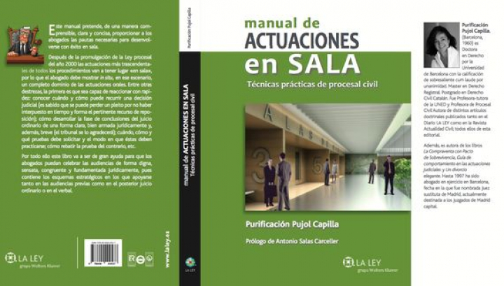 Todas esas circunstancias y carencias que he descrito con anterioridad me han llevado a elaborar y publicar un manual específico que marca exactamente los pasos y los tiempos que esas actuaciones judiciales exigen (Manual de Actuaciones en Sala. Técnicas prácticas del proceso civil. Editorial La Ley, julio de 2012). Con este manual he pretendido realizar un libro que pueda servir de base a los "barristers españoles".