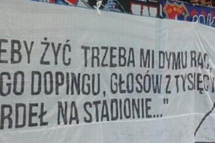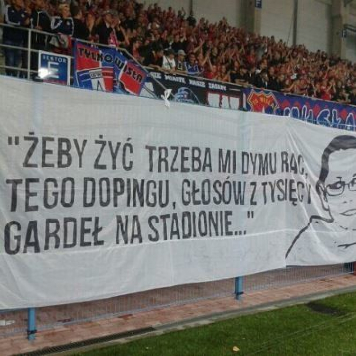 Cartel dedicado a la memoria de Dawid Zapisek en las gradas de un partido de fútbol de la liga polaca. Foto: Facebook, Dawid Zapisek.
