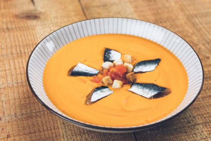 En Lakasa, coronamos este salmorejo con unos lomos de sardina que previamente hemos marinado. Con el inicio de los climas calurosos, al tacto de la sardina ya se percibe su rebosante grasa y, por tanto, su jugosidad. Comienza el mejor momento del año para consumir este pescado azul.