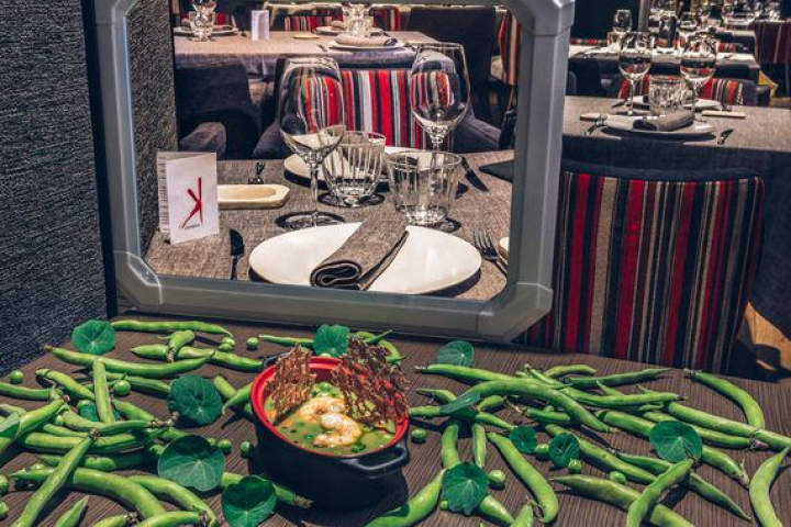 Nacho propone contrastar la sabiduría del espejo. Ante unos guisantes frescos del Maresme cocinados en su jugo que acompañamos de una gamba roja, el aderezo del jugo de su cabeza y un crujiente de oreja de cerdo, desafía al fantasioso cristal a definir las bondades del plato. "Es un producto fresco, recién traído de la huerta, en la plenitud de su temporada; lo habéis cocinado de manera sencilla para respetar la pureza de su sabor; sois minuciosos en el uso del aliño; aplicáis constancia y actitud en vuestra labor, y todo eso se percibe en esta presentación tan profesional. ¡Qué mesa no desearía acoger un plato así!".