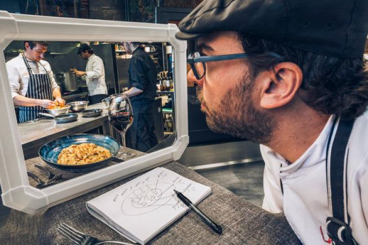 La concentración de la brigada es tal que nadie se percata de la presencia de un espejo en el pase de la cocina. Sobre el marco, hay una nota pegada: "Este espejo es una suerte de oráculo en el que todo aquel que se refleja recibe de vuelta una imagen reveladora acerca de sucesos y decisiones relativos a la vida en el restaurante. Tomadlo como un regalo de agradecimiento. Firmado: Los Simios".
