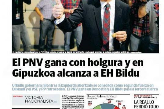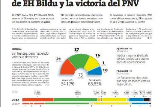 Las urnas han hablado. Los ciudadanos han decidido libremente y por primera vez sin ETA, el color de su voto. Cuando se constituya el parlamento vasco, dos de cada tres escaños estarán ocupados por nacionalistas vascos que han sido elegidos por la ciudadanía que ha ejercido su derecho al voto. Ahora ya no se puede hablar de coacciones, ni de la ausencia de representados. Todos estarán legitimados para gestionar una realidad compleja y extremadamente difícil protagonizada por una crisis que se tardará años en superar.