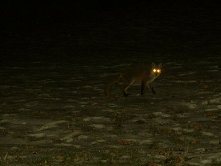 Un zorro, en la noche, por el monte de Lamedo. |ROSA M. TRISTÁN