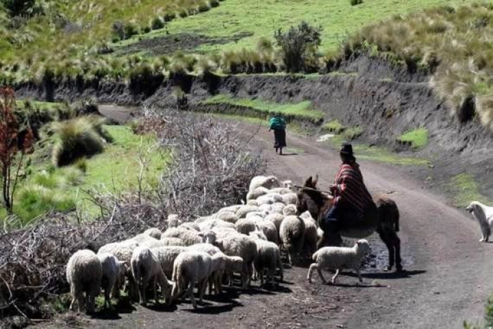 También en la provincia de Riobamba hay problemas con el agua. A más de 4.000 metros de altitud, el joven Medardo Silva me muestra cómo el ganado ha deteriorado la cubierta vegetal, que como esponjas recogía el agua de lluvia para ir filtrándola lentamente, gracias a lo cual antes llegaba a las partes bajas de la cordillera. "El ganado de los hacendados pisoteó las plantas. Ahora estamos sacándolo, intentando que se recupere la cubierta vegetal. Si canalizamos el agua y la llevamos abajo para regar los pastos, los ganaderos ya no subirán aquí sus vacas y ovejas. Debemos recuperar los páramos andinos porque ya no llueve como antes. Hace 10 años, un día como hoy estaría diluviando", me cuenta José Caguana, mirando al solitario Sol en lo más alto.