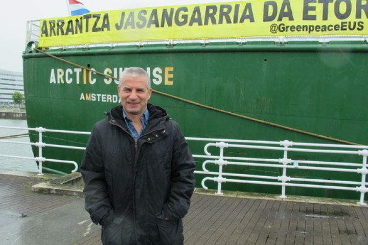 Daniel Rizzotti ante el Arctic Sunrise. Foto: RMT.