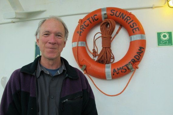 Joel Stewart en la cubierta del Arctic Sunrise. Foto: RMT.
