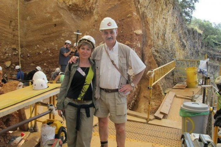 La autora con José María Bermúdez de Castro en TD10 de la Gran Dolina de Atapuerca.