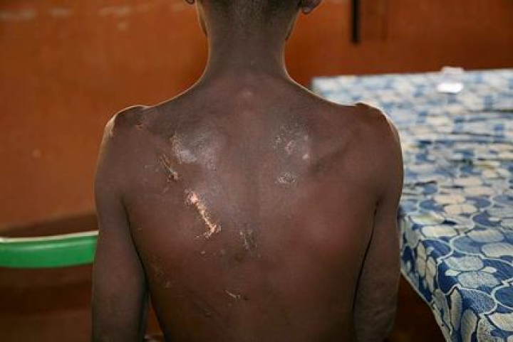Pero mis ojos también se iban a otras fotos. Las de unas espaldas marcadas de cicatrices, espaldas frágiles, que son el reverso de caras casi infantiles. Son las de algunos niños con los que se toparon los rangers de Luis Arranz, criaturas huidas de la esclavitud sexual y de la esclavitud de la sangre que se encontraron vagando por el Parque Nacional, con más miedo al sanguinario Kony que a los leones. "Cuando los encontramos, los llevamos con su familia de vuelta", señalaba Luis, sabiendo que ese es un retorno muy difícil, no siempre bien acogido.