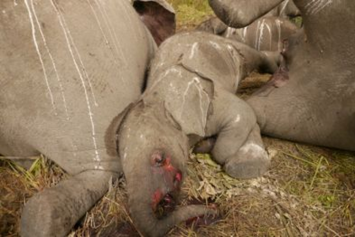 Tres crías de elefantes, masacradas por el marfil en Congo. Foto: Pablo Schapira.