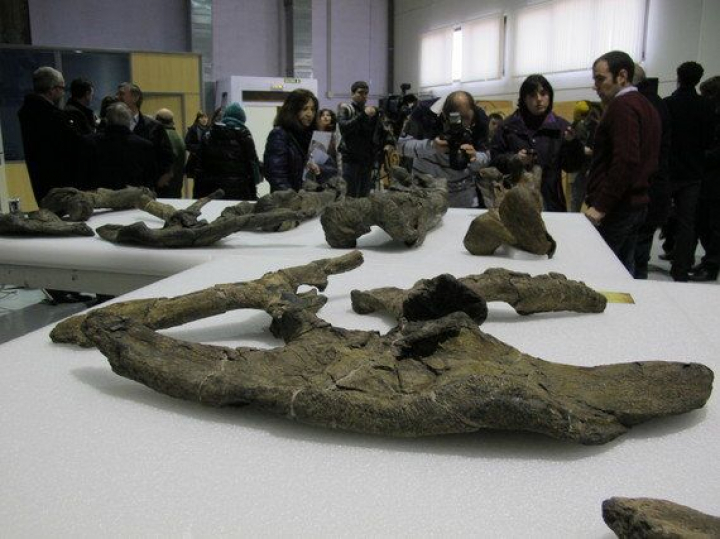 Entre tanto material, del que sólo han podido restaurar hasta ahora un 16% (hay que mencinar que son únicamente ocho investigadores), encontraron tortugas, ámbar, un buen número de cocodrilos, peces, plantas.... y sobre todo un extraño dinosaurio representado por al menos seis ejemplares distintos, toda una 'manada' con miembros de todas las edades. "Tenemos delante como 15 campos de fútbol llenos de restos. El yacimiento era entonces una marisma en la que se fueron acumulando los animales. Del nuevo dinosaurio hemos recuperado hasta el 50% en un solo esqueleto y hasta el 70% del total", me explica Eduardo Espilez, uno de los paleontólogos que ha dirigido el trabajo.