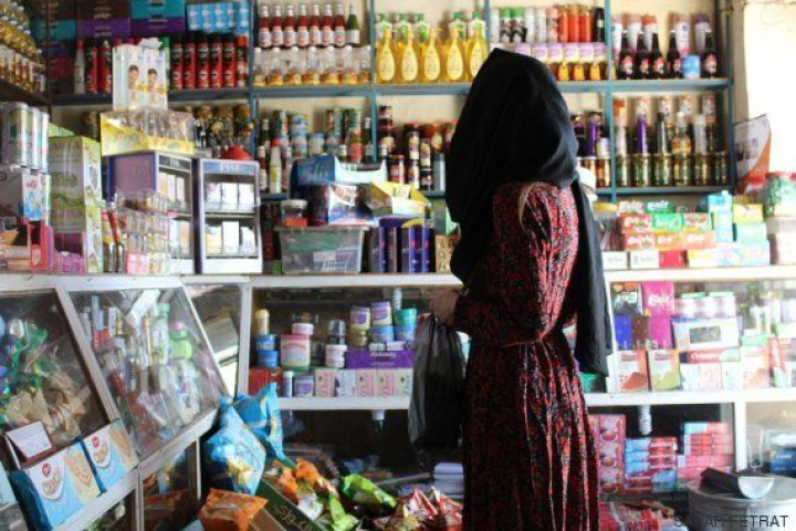 Una joven universitaria va a por compresas a una tienda de Kabul. Foto: Sahar Fetrat