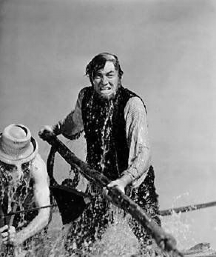 Gregory Peck en el papel del capitán Ahab, en la versión de John Huston. Fotograma de la película, vía Cinissimo.