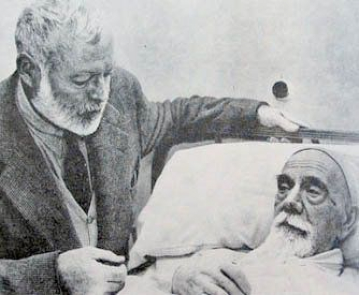 Era en la casa de Ruiz de Alarcón donde estaba ese reloj que Cela siempre recordaba, y que figuraba en lo alto de una puerta, con una leyenda que decía: "Todas hieren, la última mata". En su caso, la última hora de Baroja se empieza a vislumbrar en 1955, tras el diagnóstico que le hace el doctor Marañón de un grave proceso arterioesclerótico. Unos meses más tarde sufre una caída a las cinco de la mañana, que le supone la fractura del fémur. Su estado general se agrava notablemente. En el mes de octubre de 1956, el día 9, Ernest Hemingway le visita y le rinde un respetuoso homenaje, y unos días más tarde, el 30 de ese mismo mes, Pío Baroja fallece en su casa de Ruiz de Alarcón. Al día siguiente, una comitiva funeraria acompaña al escritor en autobús. Se dirigen para sorpresa y escándalo de muchos, tal y como ha recordado recientemente Juan Eduardo Zúñiga, al cementerio civil de Madrid, junto al de la Almudena, y es enterrado a las diez y media de la mañana. Nacía ya el mito del artista gruñón y del pesimista antropológico.