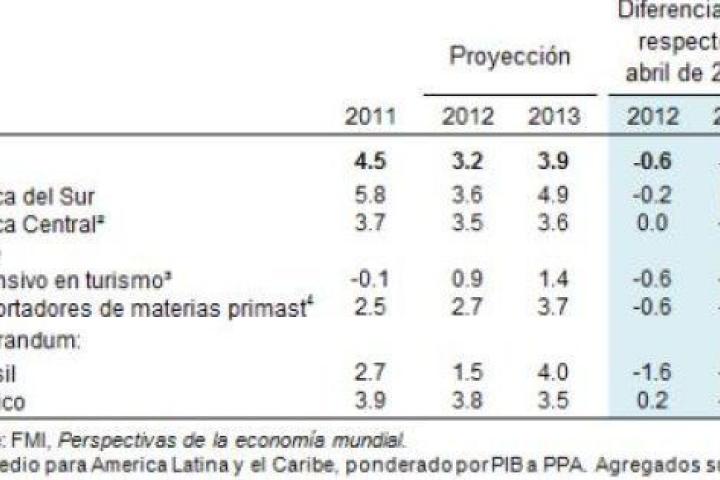 La desaceleración del crecimiento mundial tendrá efectos en la región. Prevemos que el crecimiento de América Latina se moderará de 4½ % en 2011 a alrededor de 3¼ % en 2012 (aproximadamente ½ punto porcentual por debajo de lo proyectado hace seis meses). La desaceleración ha sido particularmente pronunciada en Brasil, donde la incertidumbre mundial y las políticas adoptadas en el 2011 para controlar la demanda interna han tenido un impacto mayor que el esperado, especialmente en la inversión privada. En muchos otros países, las tasas de crecimiento son todavía robustas, desacelerándose solo en forma marginal. Durante el último año, la región ha sorteado relativamente bien brotes recurrentes de incertidumbre global en los mercados globales.