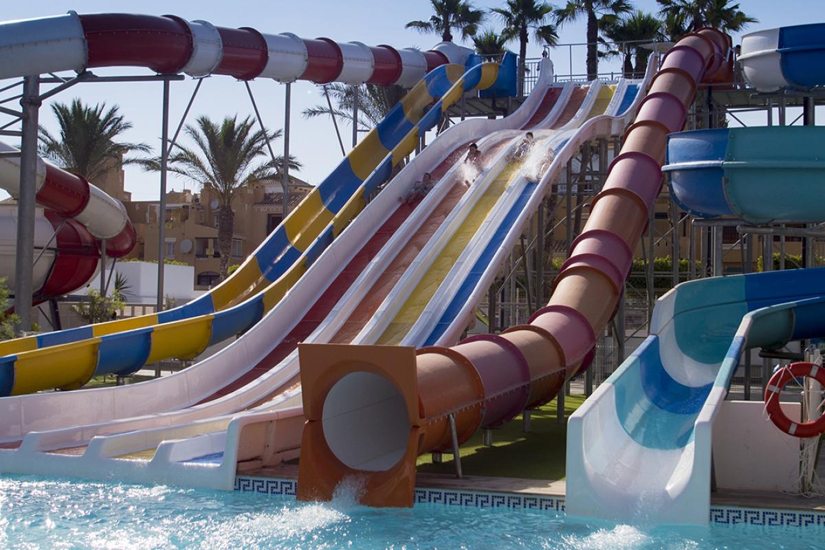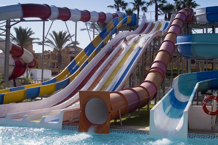 Situado en pleno Roquetas de Mar, este hotel ofrece una experiencia completa en cuanto a entretenimiento acuático se refiere. Tiene una piscina conformada por numerosos toboganes para garantizar la diversión de los más pequeños, además de otra más tradicional, mientras los adultos se relajan en el spa o en los diversos bares que alberga el complejo hostelero. Además, los diversos programas de animación y el club infantil completan la experiencia veraniega dedicada a los niños.
