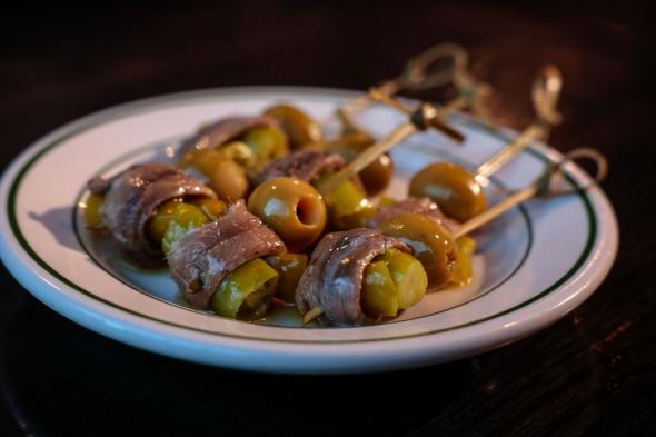 El tercio de Estrella de Galicia cuesta 8 dólares, un plato de jamón ibérico de Bellota, 35; un pintxo de gildas, 5,50 dólares; el pintxo de chistorra y tortilla, 4; el tartar de chuleta, 8; la ración de morcilla a la plancha 16; y el pulpo a la plancha; 19. De postre, el cremoso de chocolate les costó 8 euros.
