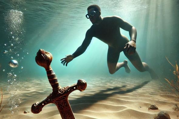 Acude a su río favorito a nadar y termina pidiendo ayuda al encontrar una espada medieval en el fondo: sólo hay tres iguales