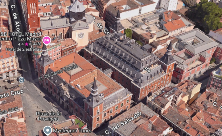Otro caso es el de la calle de la Audiencia, todavía visible en Madrid. Se trata de la calle que unía dos edificios que ahora forman parte del edificio histórico del Ministerio de Asuntos Exteriores. Ahora, vallada, es solo un pasillo que une dos edificios