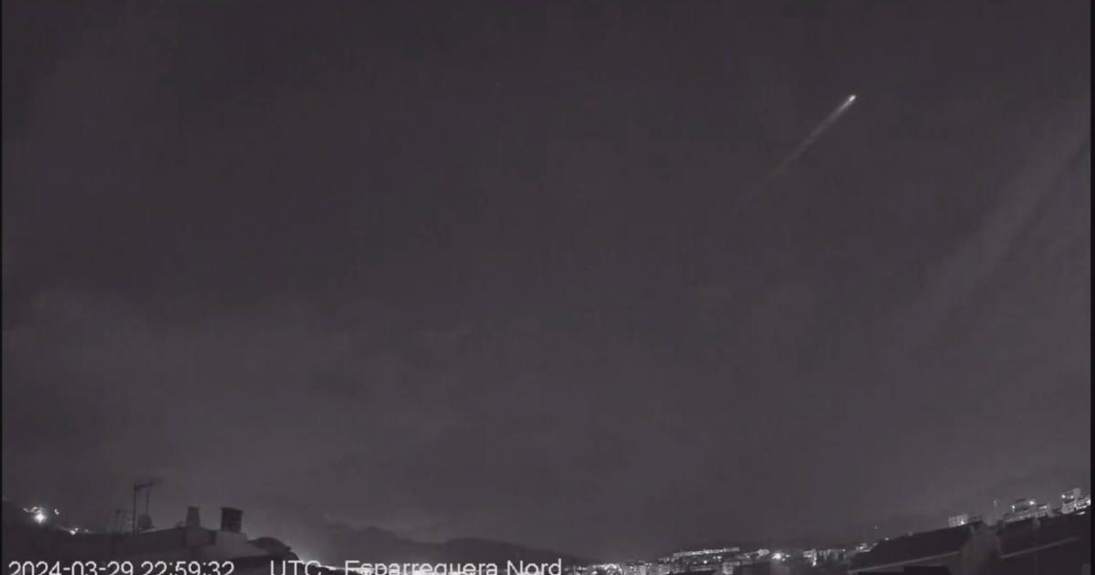 Según la Red de Investigación de Bólidos y Meteoritos, el bólido, que ha sido denominado SPMN290324ART, sobrevoló el espacio español a las 23:59 hora local del viernes (22:59 GMT) y fue grabado y fotografiado por numerosos aficionados a la astronomía.