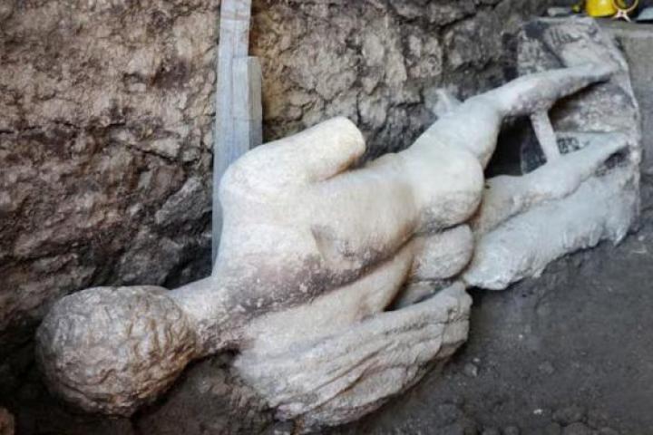 Aparece una estatua de mármol con miles de años de historia en una alcantarilla