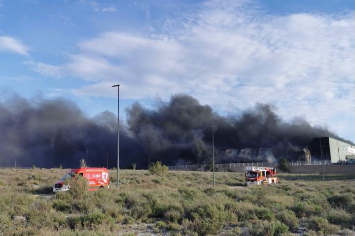 Los Bomberos de Zaragoza trabajan en contener las llamas de un gran incendio que se ha declarado este jueves en la nave de la empresa de reciclaje RAEEL S.A. en el Parque Tecnológico de Reciclado de Zaragoza. Los trabajos de extinción se podrían prolongar toda la noche.
