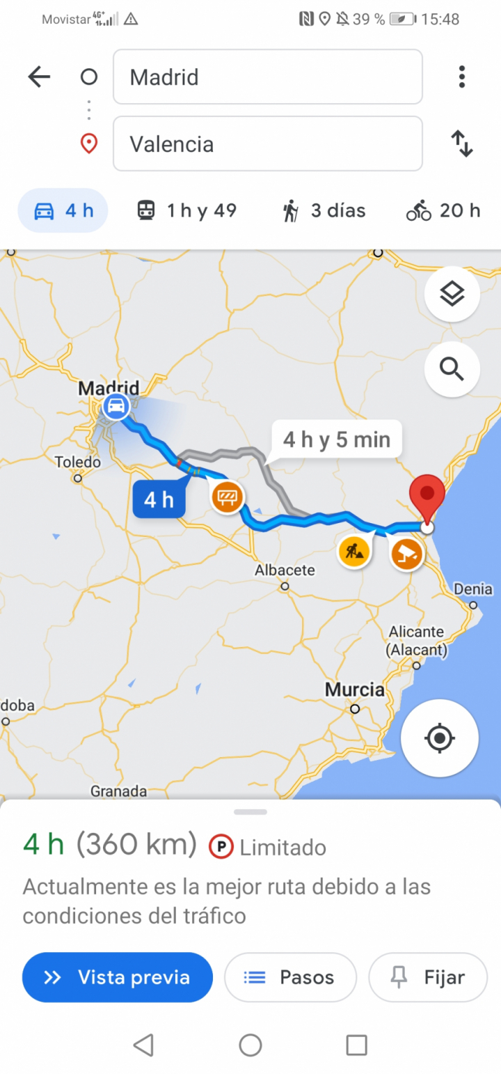 Bien es sabido que Google Maps es una herramienta muy útil para planificar el recorrido de principio a fin. La propia planificación te establece la ruta más rápida, a través del medio de transporte que hayas escogido, y solo tienes que seguir esa línea azul establecida hasta el punto de destino.