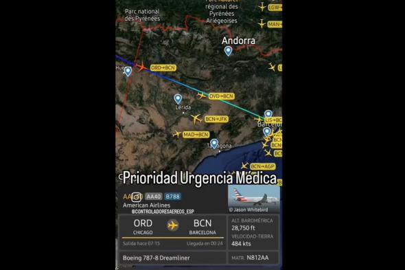 "La tripulación del vuelo procedente de Chicago con destino #Barcelona nos indica que llevan a bordo a una persona infartada y que requieren prioridad", apuntó la publicación.