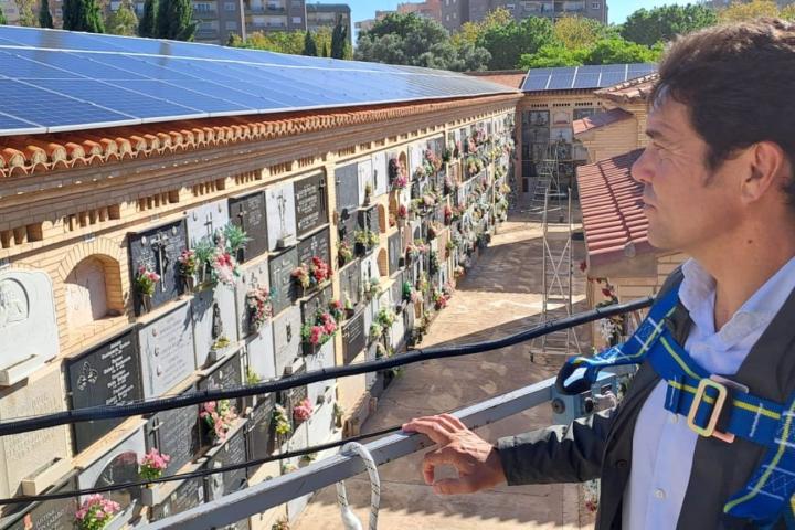 El concejal de Cementerios, Mejora Climática y Transición Energética del Ayuntamiento de València, Carlos Mundina, visitó el pasado jueves el cementerio municipal de Campanar, donde en total, sobre los nichos del camposanto se han instalado 375 unidades de placas solares en una superficie de 800 metros cuadrados, que generarán 161,25 kWp, según ha indicado el consistorio en un comunicado.