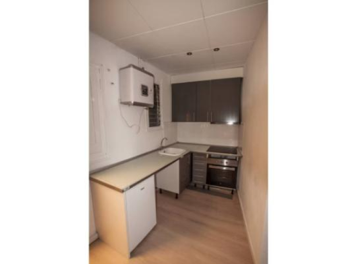 El siguiente domicilio se encuentra en Barcelona capital, concretamente en La Nova Esquerra de l'Eixample. Se trata de un piso de 32 metros cuadrados y que está a la venta por 112.500 euros. Cuenta con habitación doble, cocina, baño y trastero y su ubicación es totalmente céntrica, entre Plaza España y la Estación de Sans, muy cerca del Centro Comercial Arenas y Montjuic.