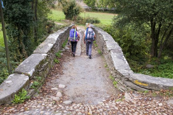 La etapa Pontevedra–Caldas de Reis, de 21 kilómetros, atraviesa zonas rurales y pequeños pueblos, con fuentes termales y puentes medievales.
