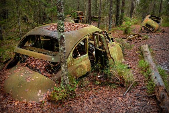 Hoy, más de dos décadas después de su inauguración, los coches apenas conservan su forma original. De la pintura brillante y los cromados relucientes solo quedan rastros. La naturaleza ha reclamado su espacio: raíces que atraviesan las carrocerías, líquenes que cubren los asientos y árboles que crecen entre los chasis.