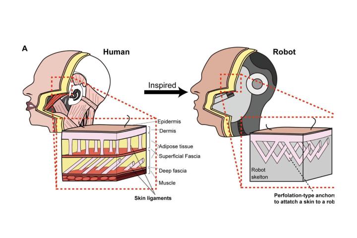 El método de "anclajes de tipo perforación" está inspirado en los ligamentos de la piel, explican los científicos. "Estos ligamentos, compuestos predominantemente de colágeno y elastina, son diminutos tejidos de conexión que anclan la piel a los tejidos subyacentes permitiendo expresiones faciales fluidas y movimientos corporales", precisan los científicos.
