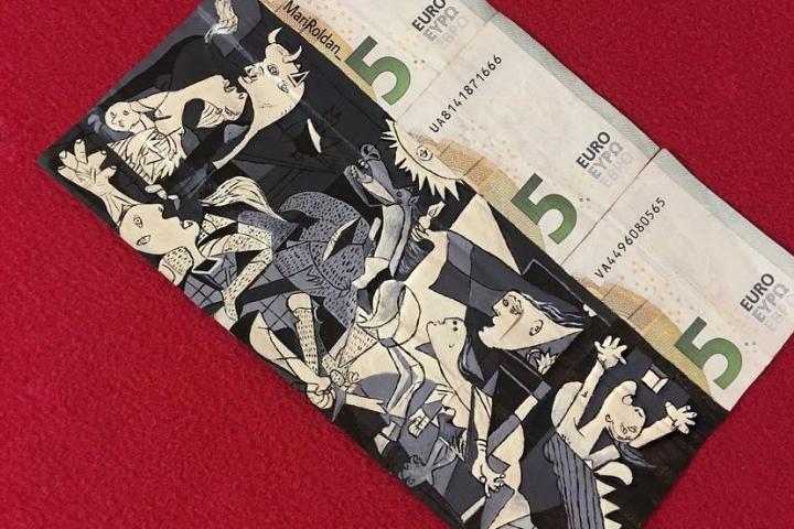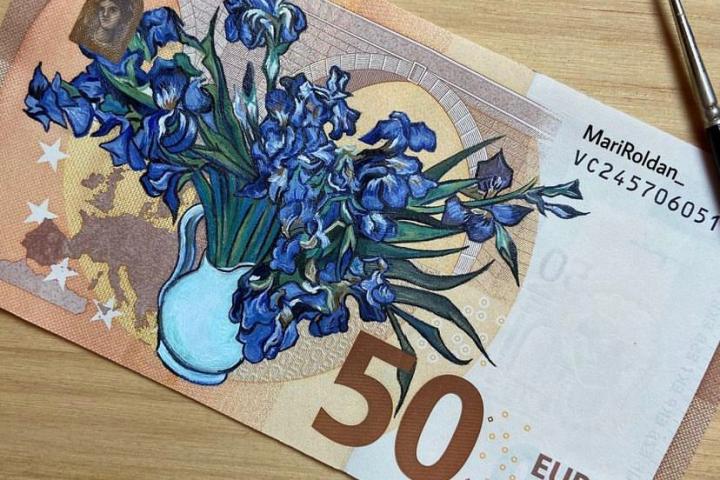 Tras consultar con un abogado a ver si esto lo podía llevar a cabo, comprobó que sí. “Me dijo que serían legales siempre y cuando no pintara más del 50% del billete y no tapase el número de serie, aunque una vez me dijeron que no me lo aceptaban por si acaso”, indica esta malagueña, que lleva desde 2015 recreando obras.